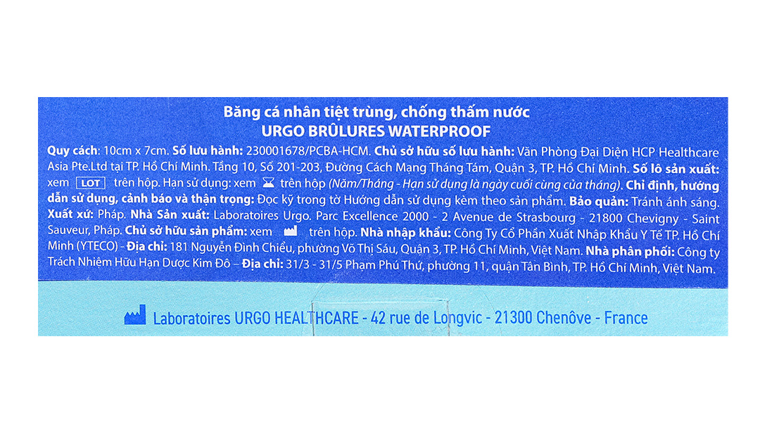 Băng các nhân tiệt trùng 7 x 10 cm, sử dụng 1 lần, đóng gói trong bao bì riêng biệt, gồm: