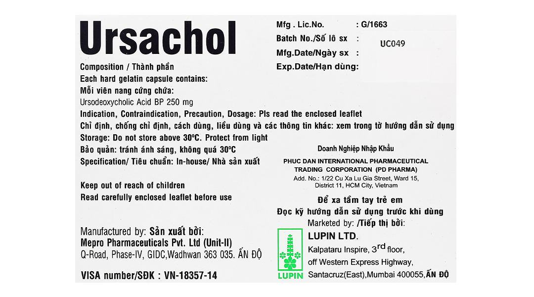 Ursachol 250mg trị xơ gan mật nguyên phát (2 vỉ x 10 viên)