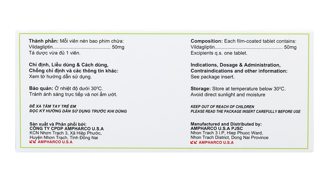 – Thận trọng khi sử dụngVildagliptin không phải là một chất thay thế insulin trên bệnh nhân cần insulin. Không được dùng Vildagliptin cho bệnh nhân đái tháo đường typ 1 hoặc để điều trị nhiễm toan ceton do đái tháo đường Suy thận: Kinh nghiệm còn hạn chế ở bệnh nhân bị bệnh thận giai đoạn cuối (ESRD) đang thẩm phân máu. Vì vậy cần thận trọng khi dùng vildagliptin ở những bệnh nhân này Suy gan: Không khuyến cáo dùng vildagliptin cho bệnh nhân suy gan, kể cả bệnh nhân có ALT hoặc AST trước điều trị > 3 lần giới hạn trên của mức bình thường Theo dõi enzym gan Các trường hợp hiếm gặp về rối loạn chức năng gan (kể cả viêm gan) đã được báo cáo. Trong những trường hợp này, bệnh nhân thường không có triệu chứng, không có di chứng lâm sàng và các xét nghiệm chức năng gan trở về bình thường sau khi ngừng điều trị. Cần thực hiện các xét nghiệm chức năng gan trước khi bắt đầu điều trị bằng vildagliptin. Cần theo dõi các xét nghiệm chức năng gan trong khi điều trị bằng vildagliptin 3 tháng một lần trong năm đầu và định kỳ sau đó. Những bệnh nhân bị tăng nồng độ transaminase cần được theo dõi bằng cách đánh giá lại chức năng gan lần thứ hai để khẳng định kết quả và sau đó phải thường xuyên xét nghiệm chức năng gan cho đến khi các trị số bất thường trở về nồng độ bình thường. Nếu AST hoặc ALT tăng gấp 3 lần giới hạn trên của mức bình thường hoặc cao hơn và kéo dài, khuyến cáo ngừng điều trị bằng vildagliptin. Nếu bệnh nhân bị vàng da hoặc có các biểu hiện khác cho thấy rối loạn chức năng gan, phải ngừng dùng vildagliptin. Sau khi ngừng điều trị bằng vildagliptin và các xét nghiệm chức năng gan đã trở về bình thường, không được dùng lại vildagliptin. Suy tim Một thử nghiệm lâm sàng với vildagliptin trên bệnh nhân có phân độ suy tim theo Hiệp hội tim New York (NYHA) từ I – III cho thấy điều trị với vildagliptin không liên quan đến sự thay đổi chức năng thất trái hoặc làm nặng thêm tình trạng suy tim sung huyết (CHF) trước đó, so với giả dược. Kinh nghiệm lâm sàng trên những bệnh nhân có suy tim độ III theo NYHA được điều trị với vildagliptin còn hạn chế và kết quả là không kết luận được. Không có kinh nghiệm về việc sử dụng vildagliptin trong các thử nghiệm lâm sàng ở bệnh nhân suy tim độ IV theo phân độ chức năng của NYHA và do đó không khuyến cáo sử dụng ở những bệnh nhân này . Rối loạn da Tổn thương da, bao gồm phồng rộp và loét đã được báo cáo ở các chi của khỉ trong các nghiên cứu độc học phi lâm sàng. Mặc dù không quan sát thấy các tổn thương da với tỷ lệ tăng trong các thử nghiệm lâm sàng, có kinh nghiệm còn hạn chế ở bệnh nhân bị biến chứng về da do đái tháo đường. Hơn nữa, đã có báo cáo hậu mãi về tổn thương da dạng bóng nước và tróc vảy. Vì vậy, để phù hợp với chăm sóc thường quy ở bệnh nhân đái tháo đường, khuyến cáo nên theo dõi các rối loạn da như phồng rộp hoặc loét. Viêm tụy cấp Việc dùng vildagliptin liên quan đến tăng nguy cơ bị viêm tụy cấp. Bệnh nhân phải được thông báo về các triệu chứng đặc trưng của viêm tụy cấp. Nếu nghi ngờ viêm tụy, phải dừng dùng vildagliptin; nếu đã xác định viêm tụy cấp thì không được điều trị vildagliptin trở lại. Cần thận trọng ở bệnh nhân có tiền sử viêm tụy cấp. Hạ đường huyết: Sulfonylurea đã được biết gây hạ đường huyết. Bệnh nhân đang dùng vildagliptin phối hợp với sulphonylurea có thể có nguy cơ hạ đường huyết. Vì vậy có thể xem xét dùng một liều sulphonylurea thấp hơn để làm giảm nguy cơ hạ đường huyết. Tá dược: Thuốc có chứa lactose. Những bệnh nhân có bệnh di truyền hiếm gặp về việc không dung nạp galactose, thiếu hụt lactase hoặc kém hấp thu glucose-galactose không nên dùng thuốc này. – Thai kỳ và cho con búThời kỳ mang thai Không có dữ liệu đầy đủ về việc dùng vildagliptin trên phụ nữ mang thai. Các nghiên cứu trên động vật cho thấy độc tính về sinh sản khi sử dụng liều cao. Những nguy cơ tiềm ẩn trên người chưa được biết. Do thiếu dữ liệu trên người nên không được sử dụng vildagliptin trong suốt thời kỳ mang thai. Thời kỳ cho con bú Vì chưa rõ vildagliptin có được bài tiết vào sữa mẹ hay không. Các nghiên cứu trên động vật cho thấy vildagliptin được bài tiết vào sữa mẹ. Do đó không nên dùng vildagliptin đối với phụ nữ cho con bú. Khả năng sinh sản Chưa có nghiên cứu về ảnh hưởng trên khả năng sinh sản ở người được thực hiện với vildagliptin. – Khả năng lái xe và vận hành máy mócChưa có nghiên cứu được tiến hành về tác động trên khả năng lái xe và vận hành máy móc. Vì vậy những bệnh nhân có thể bị chóng mặt nên tránh lái xe hoặc vận hành máy móc. – Tương tác thuốcVildagliptin có khả năng tương tác với các thuốc phối hợp yếu. Vì vildagliptin không phải là một cơ chất của enzym cytochrom P (CYP ) 450, kh