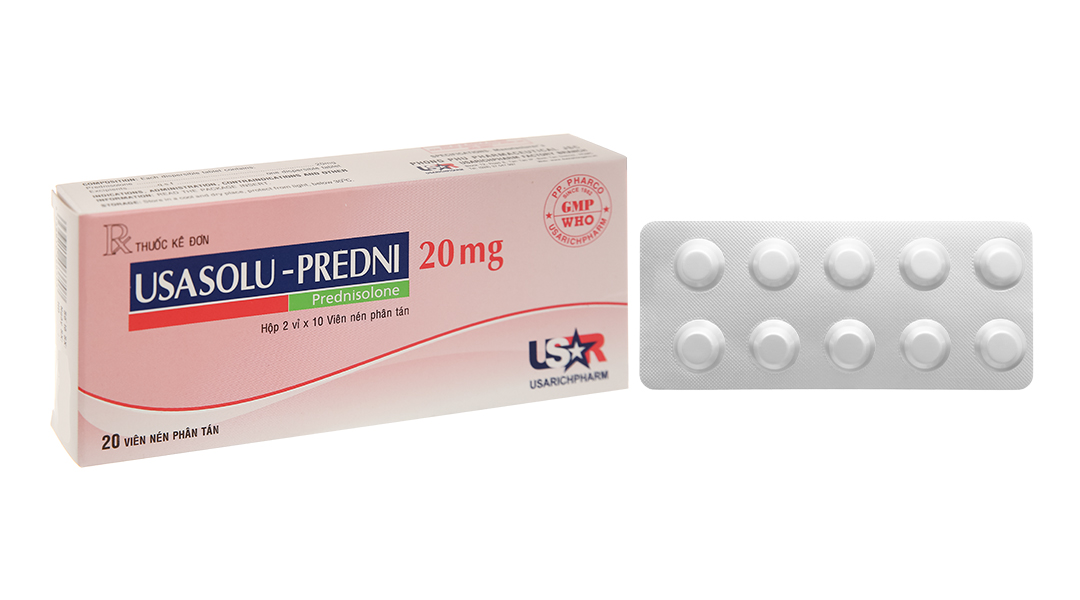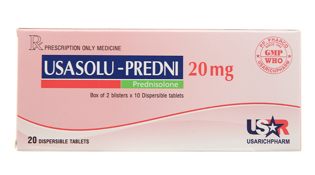 – Với liều thấp, prednisolon có tác dụng chống viêm; với liều cao, thuốc có tác dụng ức chế miễn dịch. Những liều lớn thuốc có thể làm giảm sản sinh kháng thể, còn liều trung bình không có tác dụng này (ví dụ: prednisolon 20 mg/ngày).