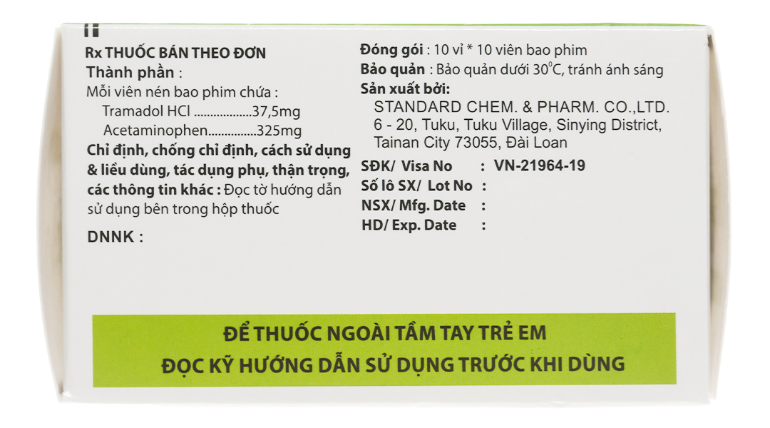 Tramadol hydroclorid 37.5mg, Acetaminophen 325mg.