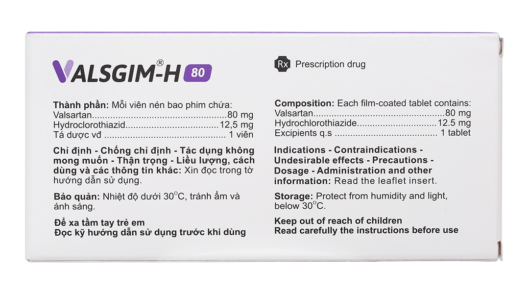 Valsgim – H 80mg/12.5mg chỉ định điều trị tăng huyết áp (2 vỉ x 14 viên)