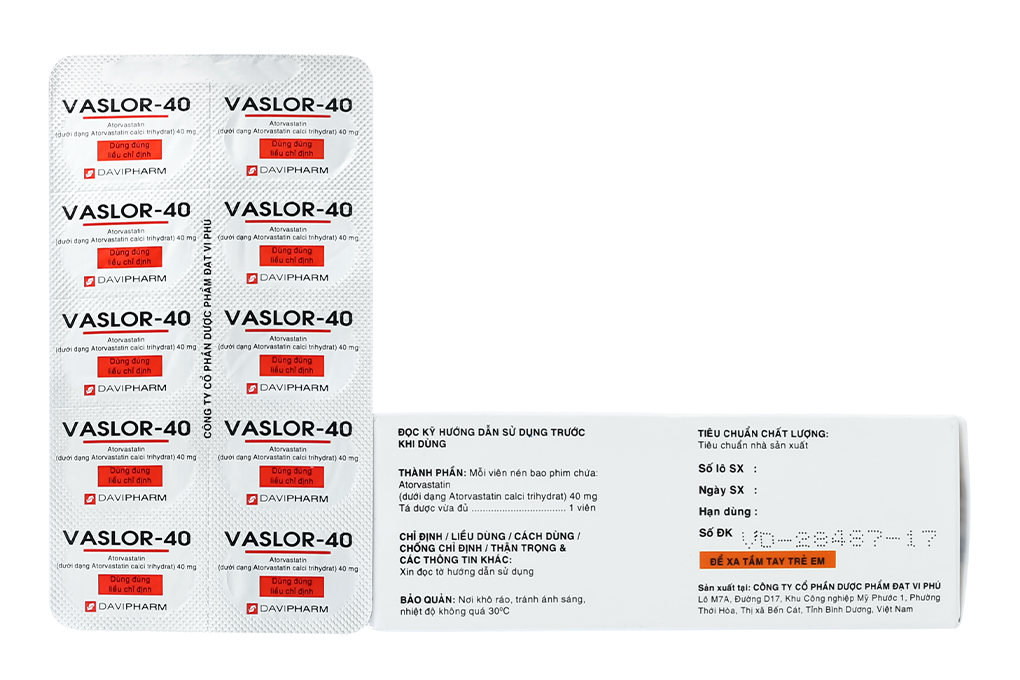 Mỗi viên nén bao phim Vaslor-40 chứa: