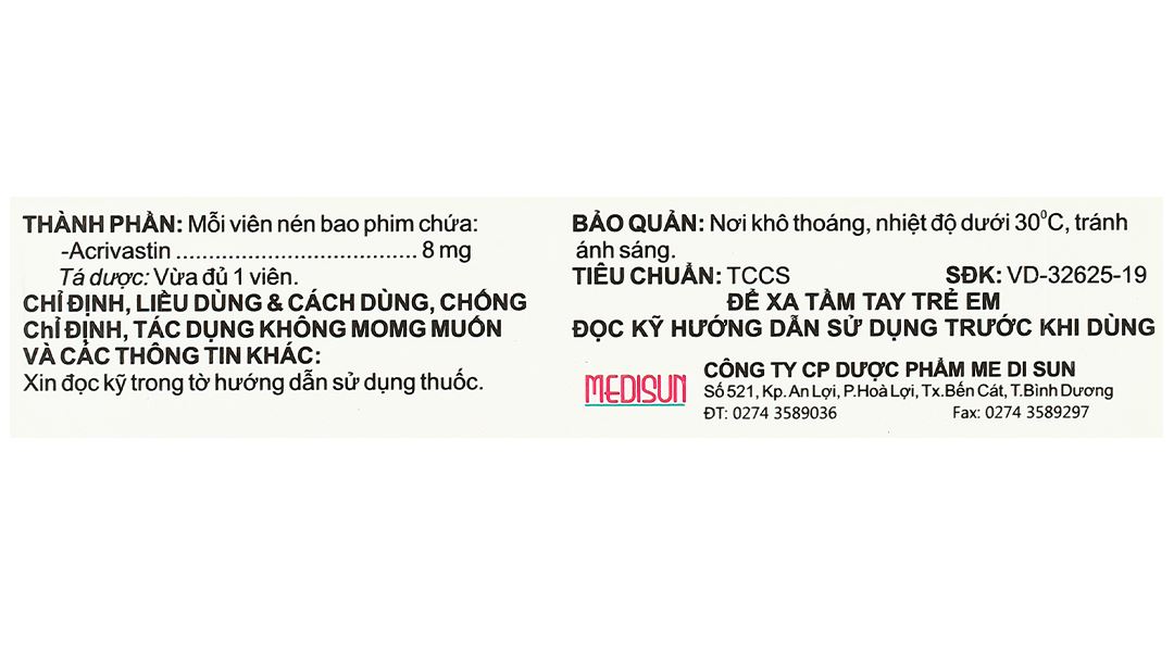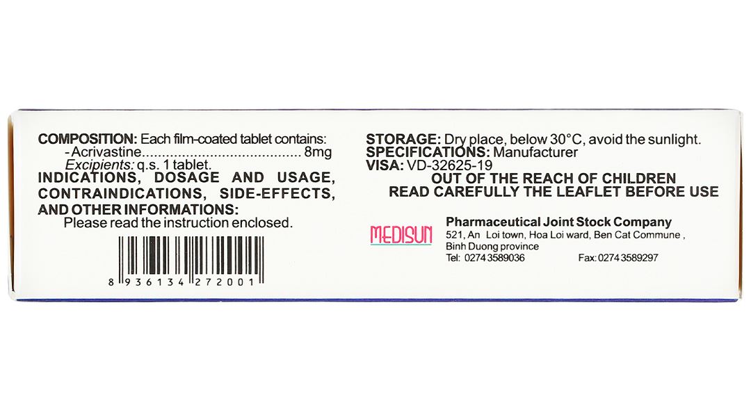 - Thành phần hoạt chất: Acrivastin 8 mg.