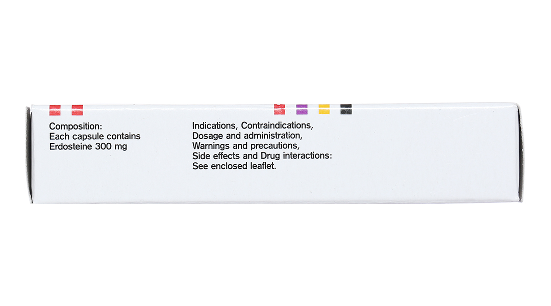 – Các nghiên cứu về dược lý học cho thấy là erdostein, theo đúng nghĩa, không có những đặc tính này mà chỉ sau khi được chuyển hóa, biến đổi thành các chất chuyển hóa có hoạt tính có nhóm hóa học -SH. Những chất chuyển hóa này phá vỡ nhóm -SH và đưa đến giảm tính đàn hồi và độ nhớt của chất nhầy, vì vậy làm tăng cường sự khạc đờm.
