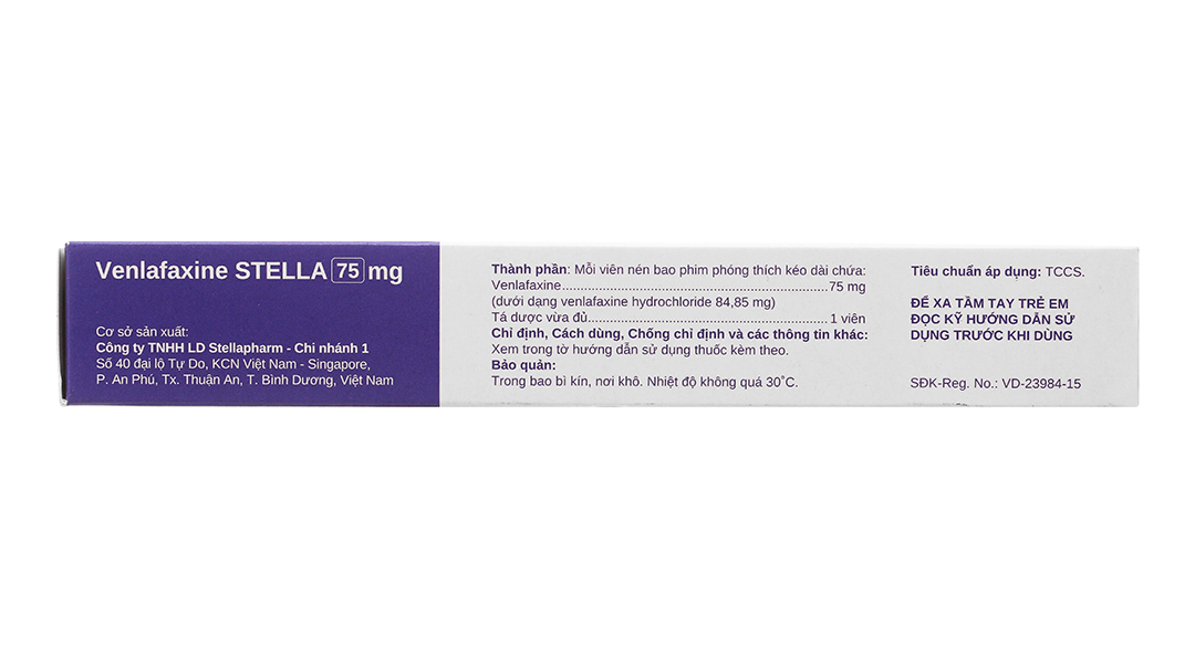 Hoạt chất: Venlafaxine (dưới dạng venlafaxine hydrochloride 84,85 mg) 75 mg