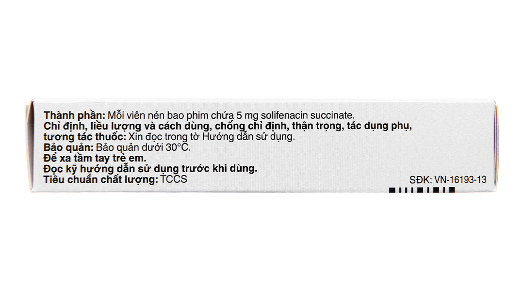 - Hoạt chất: Solifenacin succinate 5mg.
