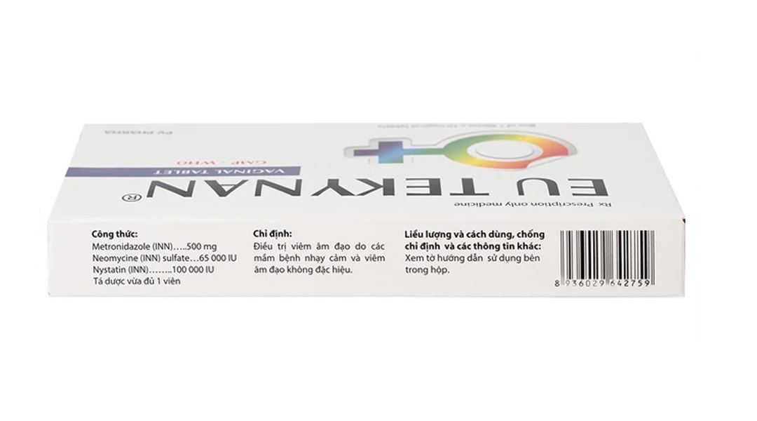 – Thận trọng khi sử dụngKhông nên giao hợp trong quá trình điều trị bằng EU TEKYNAN. Nên điều trị cùng lúc cả 2 người, bất kể có hoặc không có dấu hiệu lâm sàng. Cần vệ sinh cá nhân (mặc quần lót) thường xuyên để tránh tình trạng lây nhiễm. Không nên ngừng điều trị trong thời gian có kinh nguyệt. Liên quan đến Metronidazol:
