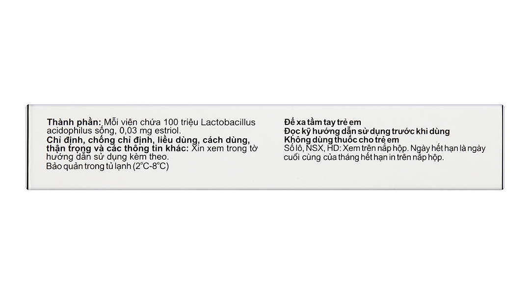 Mỗi viên nén đặt âm đạo chứa 100 triệu Lactobacillus acidophilus sống và 0,03mg Estriol.