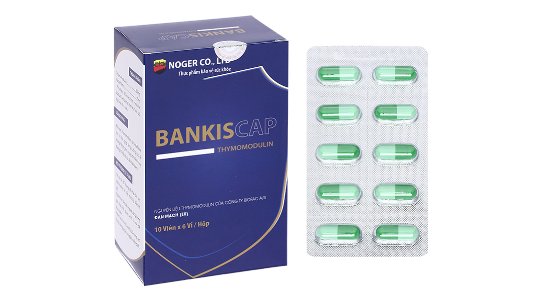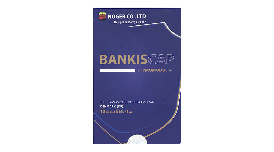 - Bankiscap là sản phẩm hỗ trợ tăng cường sức đề kháng hiệu quả cho cơ thể, với thành phần chính gồm Thymomodulin và Glutathione. Thymomodulin giúp kích thích hệ miễn dịch, trong khi Glutathione là một chất chống oxy hóa mạnh mẽ, giúp bảo vệ tế bào và giảm nguy cơ nhiễm trùng, đặc biệt là các bệnh lý đường hô hấp do sức đề kháng yếu.