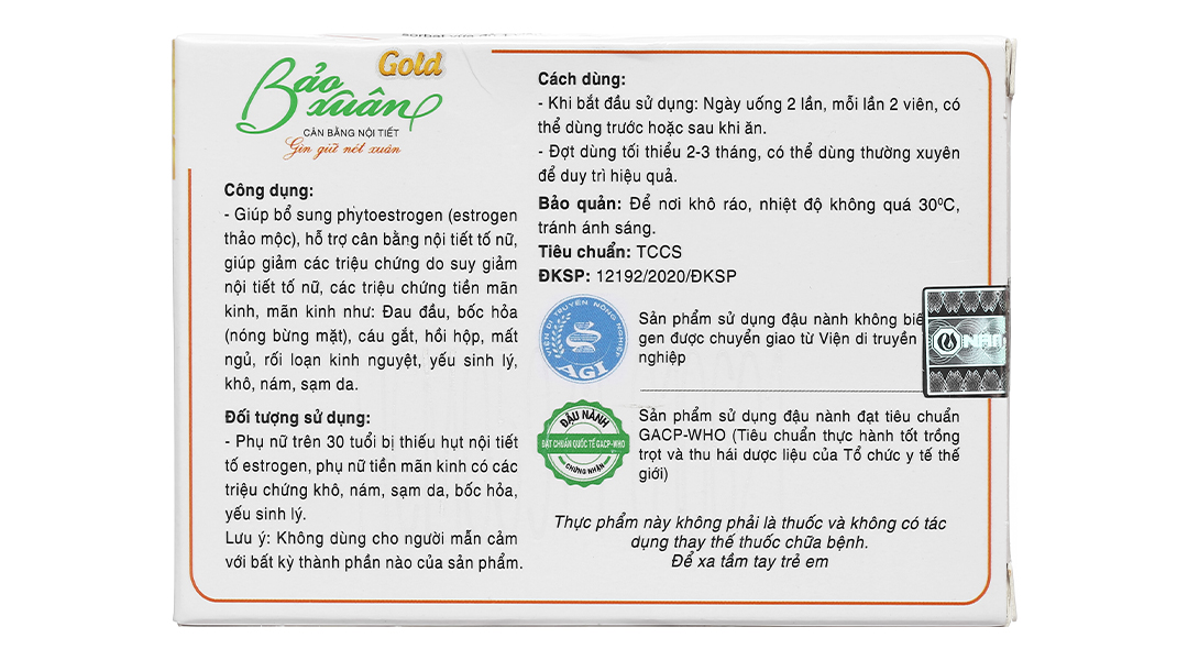 Bảo Xuân Gold giúp bổ sung phytoestrogen (estrogen thảo mộc), hỗ trợ cân bằng nội tiết tố nữ, giúp giảm các triệu chứng do suy giảm nội tiết tố nữ, các triệu chứng tiền mãn kinh, mãn kinh như: Đau đầu, bốc hỏa (nóng bừng mặt), cáu gắt, hồi hộp, mất ngủ, rối loạn kinh nguyệt, yếu sinh lý, khô, nám, sạm da.