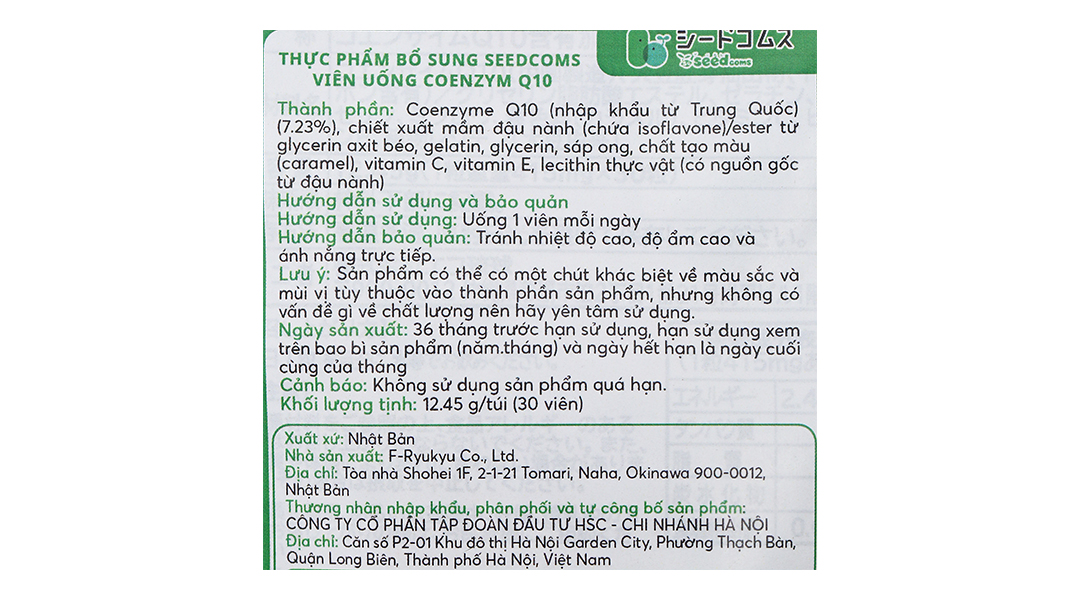 Seedcoms Coenzym Q10 là một sản phẩm đến từ thương hiệu nổi tiếng Seedcoms của Nhật Bản, mang đến giải pháp toàn diện để chăm sóc sức khỏe và sắc đẹp từ bên trong. Với hơn 10 năm kinh nghiệm trong ngành thực phẩm chức năng, Seedcoms đã khẳng định tên tuổi của mình trong lòng người tiêu dùng bằng các sản phẩm chất lượng cao, hiệu quả vượt trội.