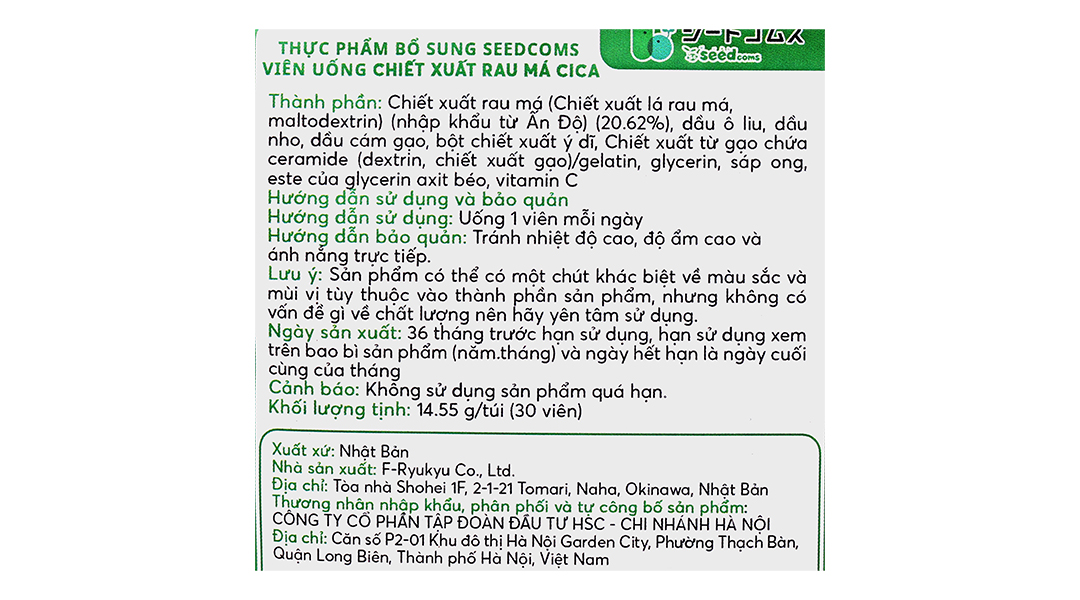 Seedcoms Cica chiết xuất rau má là một sản phẩm tuyệt vời đến từ thương hiệu Seedcoms nổi tiếng của Nhật Bản. Với công thức chứa các thành phần thiên nhiên như chiết xuất rau má, chiết xuất ý dĩ và các loại dầu thực vật, sản phẩm này không chỉ giúp nuôi dưỡng làn da mà còn mang lại làn da khỏe mạnh, mịn màng và tươi sáng.