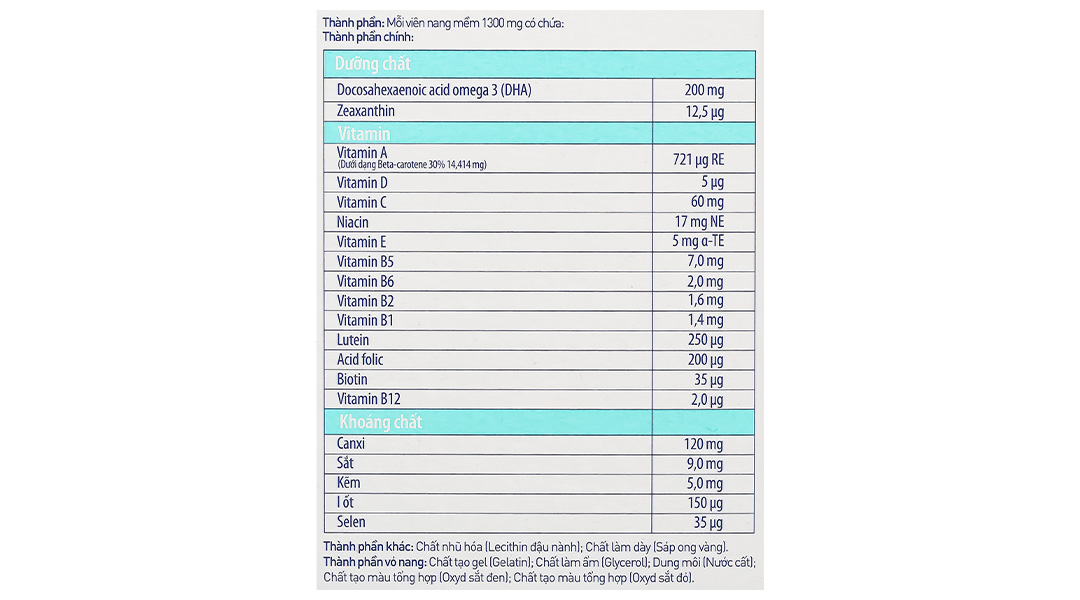 - Hỗ trợ giảm nguy cơ thiếu hụt DHA, lutein, axit folic, sắt, các vitamin và khoáng chất cần thiết cho phụ nữ đang cho con bú.