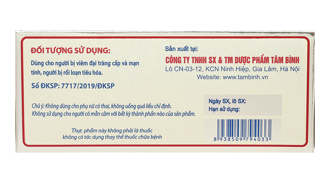 Dùng cho người bị viêm đại tràng cấp và mạn tính, người bị rối loạn tiêu hóa.