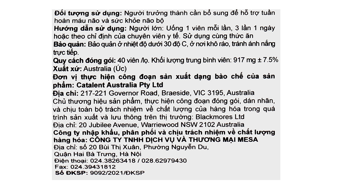 Bổ não Blackmores được dùng cho người trưởng thành cần bổ sung để hỗ trợ tuần hoàn máu não và sức khỏe não bộ.
