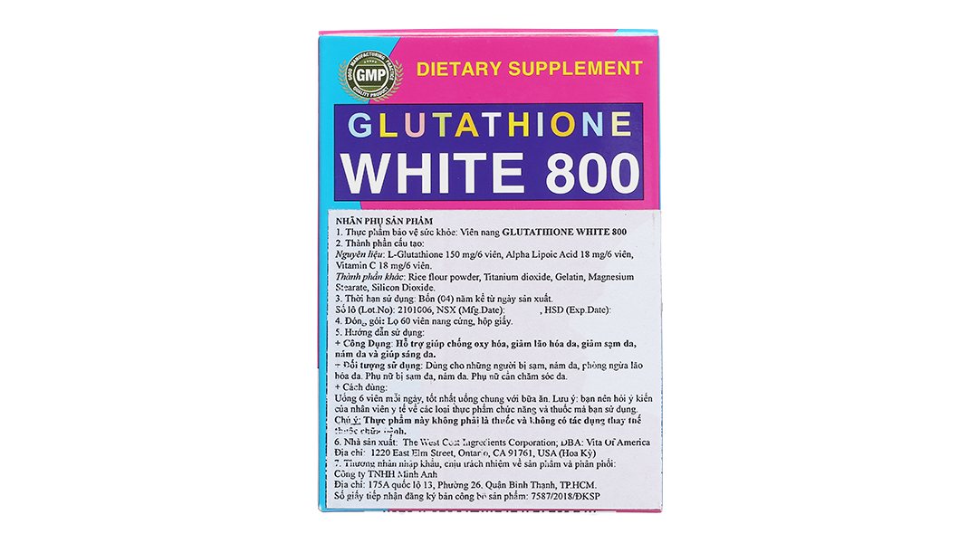 Glutathione White 800 làm trắng da, giảm nám chai 60 viên