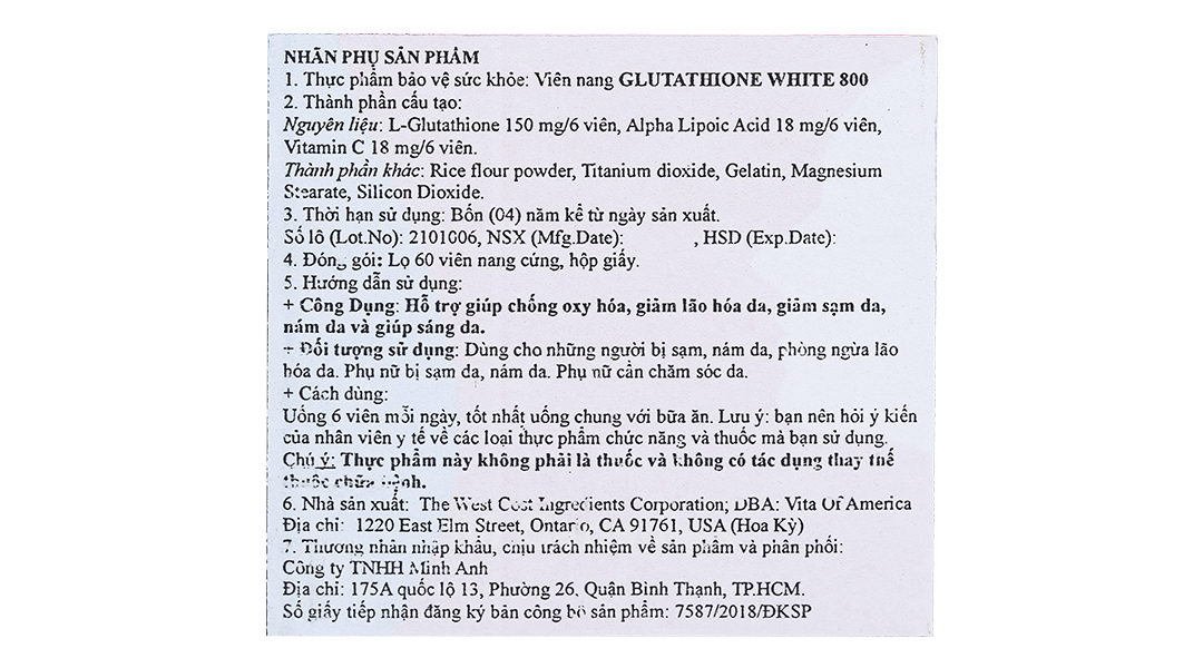 Hoạt chấtAlpha Lipoic Acid, Vitamin C, L-Glutathione