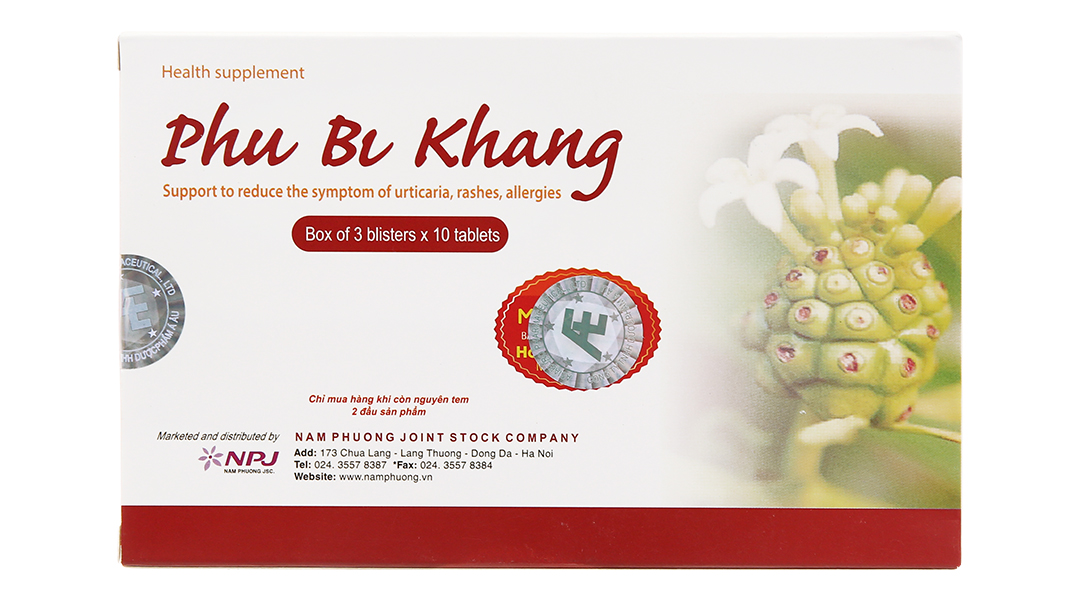 - Phụ Bì Khang chứa 2 thành phần quan trọng có chức năng phục hồi tế bào gan, bảo vệ và bồi bổ tế bào gan là Cao nhàu và Cao gan từ đó cải thiện tình trạng mề đay, làm dịu ngay tình trạng mẩn ngứa. Ngoài ra sản phẩm còn có tác dụng giúp tăng cường sức đề kháng cho cơ thể, phòng ngừa mề đay, dị ứng tái phát.