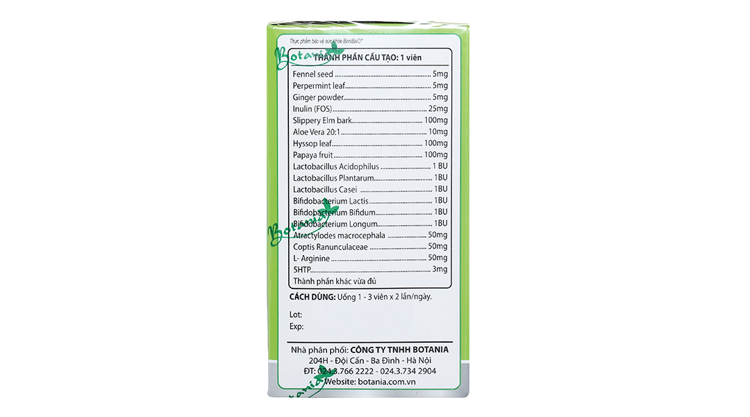 - Boni Baio là một sản phẩm nhập khẩu từ Mỹ được phân phối bởi công ty Botania. Botania được biết đến là công ty uy tín chuyên nhập khẩu các thực phẩm chức năng từ Mỹ, Canada đã thành lập lâu đời trên thị trường Việt Nam.