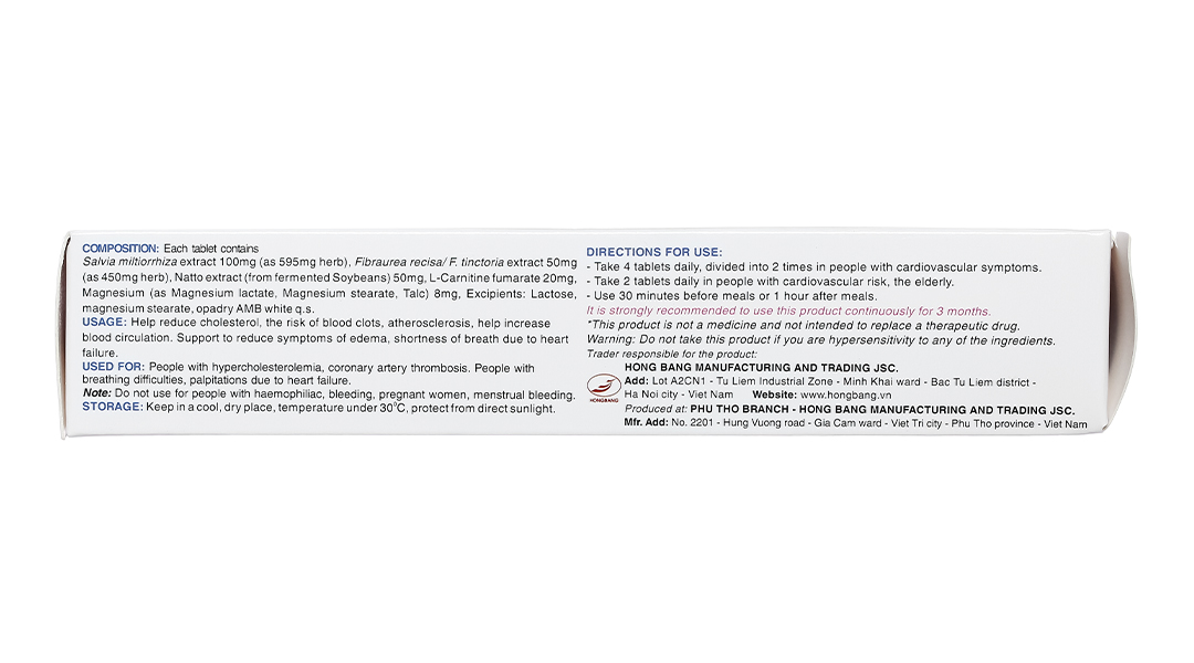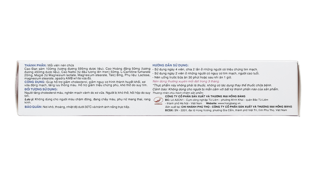 Đối tượng sử dụngNgười tăng cholesterol máu, nghẽn mạch vành do xơ vữa, khó thở, hồi hộp do suy tim