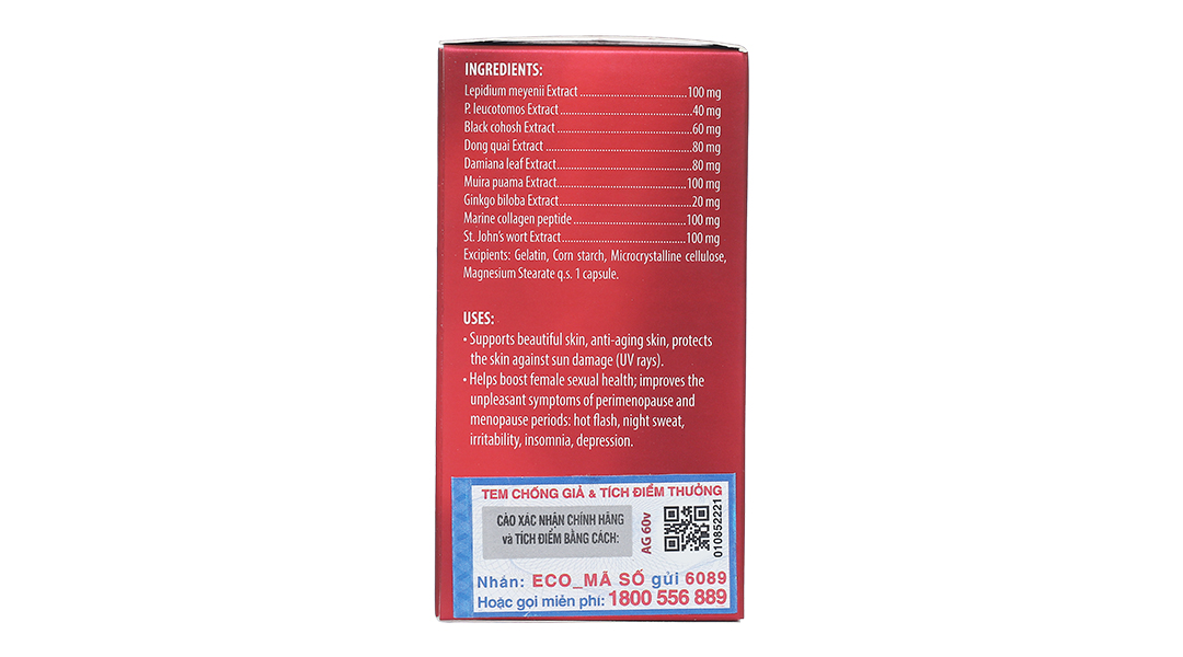 - Hỗ trợ tăng cường sinh lý nữ; cải thiện các triệu chứng khó chịu thời kỳ tiền mãn kinh và mãn kinh: bốc hỏa, đổ mồ hôi đêm, cáu gắt, mất ngủ, trầm cảm.