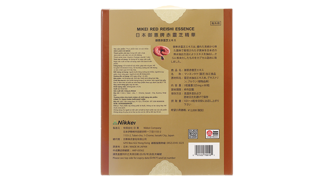 Xích linh chi Mikei hộp 60 viên là sản phẩm thực phẩm chức năng có xuất xứ từ Nhật Bản, chứa thảo dược thiên nhiên – tinh khiết và không chứa thuốc bảo vệ thực vật. Kiểm nghiệm đạt tiêu chuẩn quốc tế của Tổ chức Y tế Thế giới (WHO) và được tiêu thụ rộng rãi tại nhiều quốc gia trên thế giới.