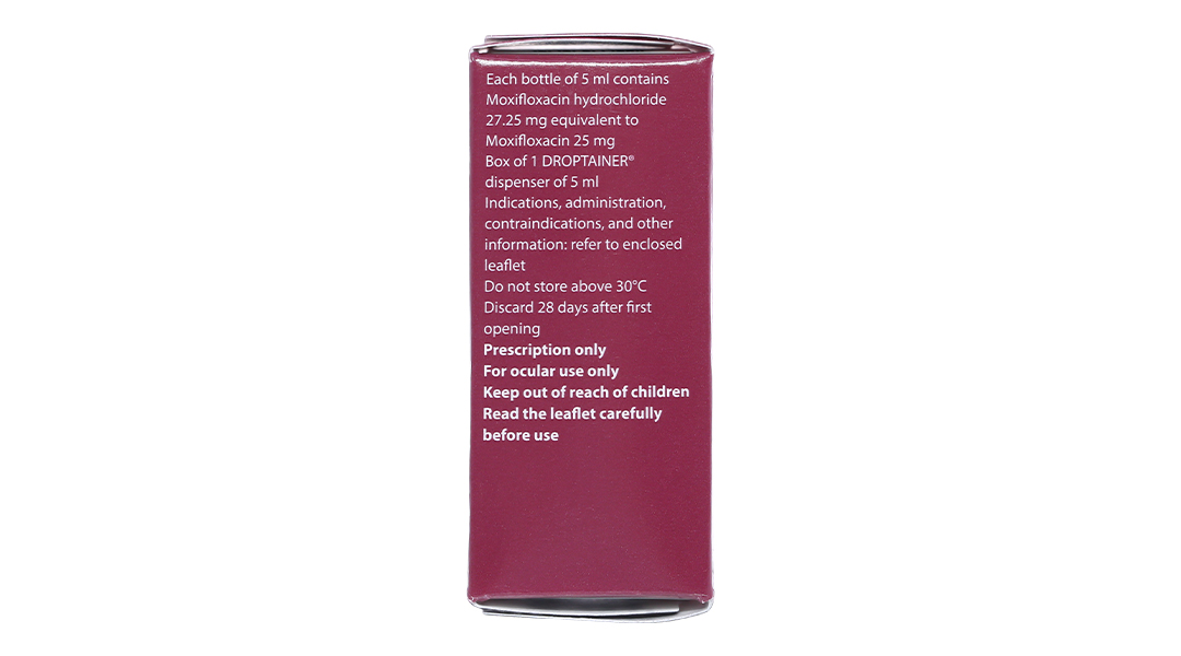 - Hoạt chất: Moxifloxacin 0.5% (dưới dạng moxifloxacin hydroclorid).