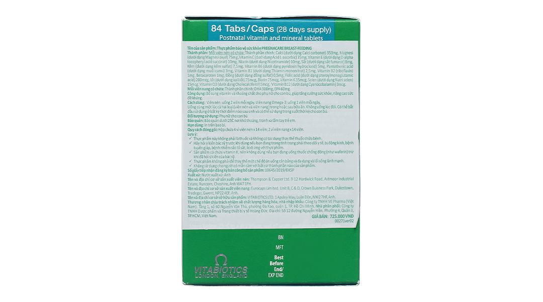 Một yếu tố quan trọng khác là Pregnacare Breast-feeding được thiết kế với công thức cân bằng và an toàn, giúp mẹ bổ sung đầy đủ vi chất mà không gây ra các tác dụng phụ không mong muốn. Sản phẩm được phát triển dựa trên các nghiên cứu khoa học tiên tiến, đảm bảo rằng mỗi thành phần được đưa vào với liều lượng lý tưởng cho bà mẹ sau sinh. Công thức của Pregnacare Breast-feeding không chỉ phù hợp với những bà mẹ đang cho con bú mà còn có thể được sử dụng như một loại thực phẩm bổ sung tổng quát trong vòng 6 – 9 tháng sau sinh hoặc lâu hơn nếu cần, giúp mẹ phục hồi sức khỏe sau quá trình mang thai và sinh nở.