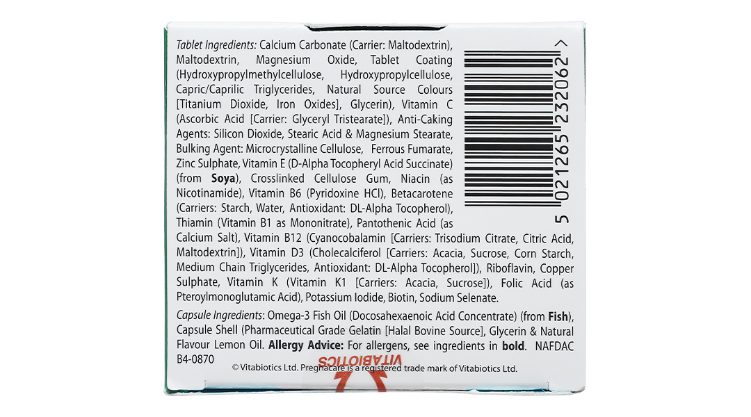 Sản phẩm cung cấp 300mg DHA (Docosahexaenoic Acid) trong mỗi viên nang, mức DHA được các chuyên gia quốc tế khuyến nghị cho các bà mẹ trong thời kỳ cho con bú. DHA là một axit béo thiết yếu, có vai trò quan trọng trong sự phát triển của não bộ và thị giác của trẻ sơ sinh. Vì trẻ sơ sinh không thể tổng hợp DHA một cách đầy đủ từ các nguồn bên ngoài, việc bổ sung DHA qua sữa mẹ là vô cùng quan trọng. Sản phẩm Pregnacare Breast-feeding giúp bổ sung DHA từ nguồn dầu cá tinh khiết, được chứng nhận chất lượng GMP, giúp bà mẹ yên tâm về chất lượng và nguồn gốc.