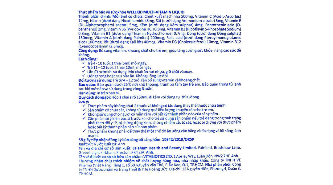 Siro Wellkid Multi-Vitamin Liquid hỗ trợ tăng đề kháng chai 150ml