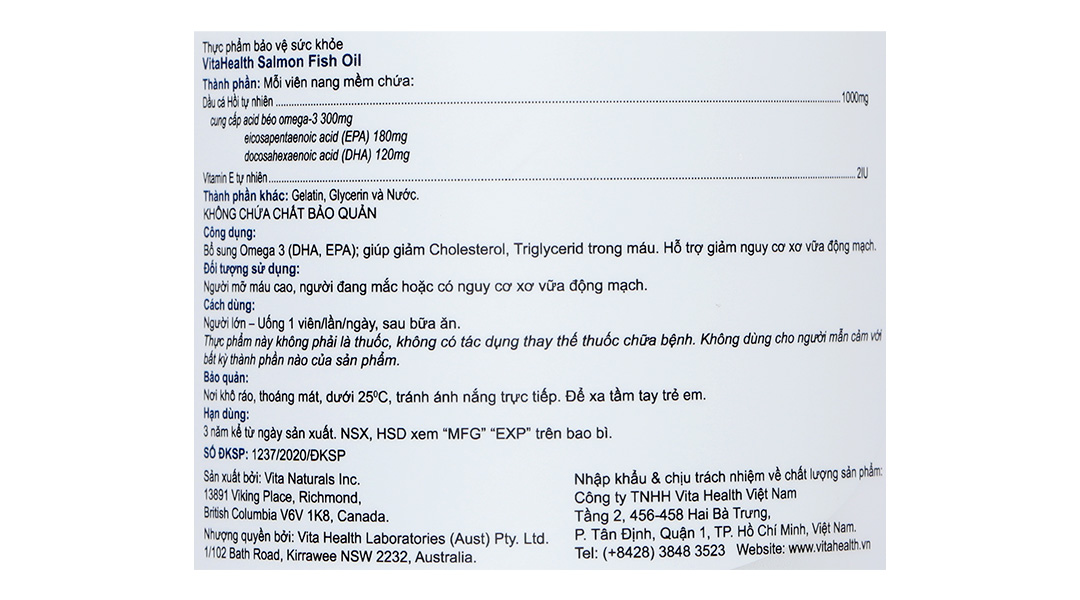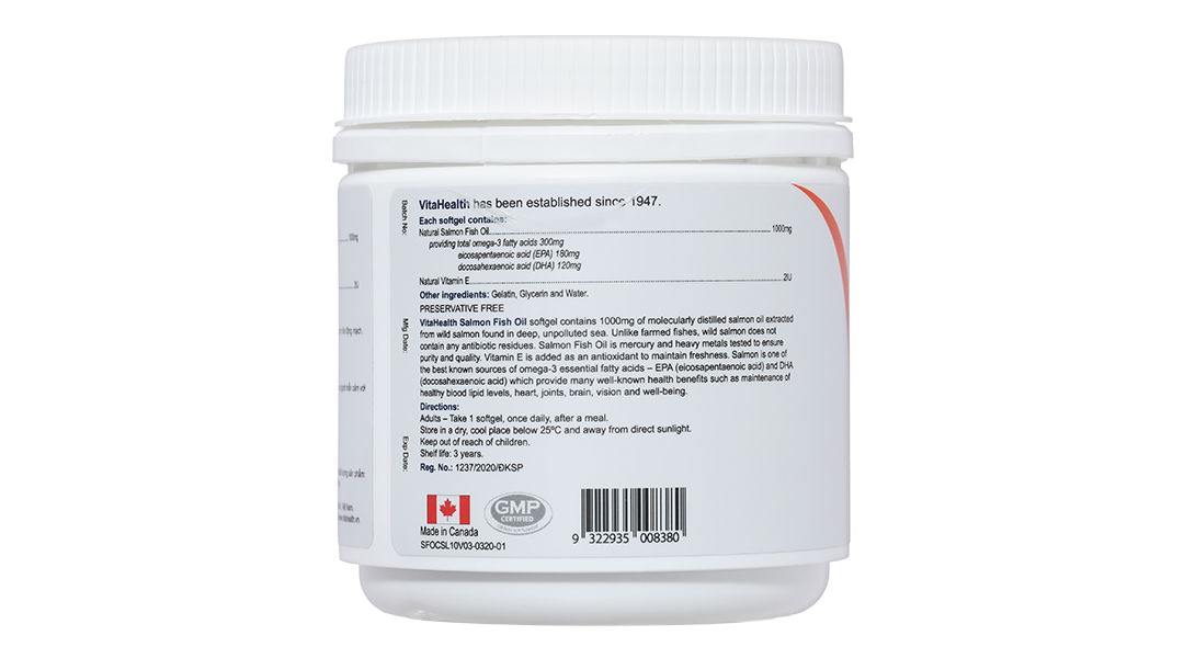- VitaHealth Salmon Fish Oil là lựa chọn lý tưởng để duy trì một hệ tim mạch khỏe mạnh, một cuộc sống năng động, tràn đầy sức sống.