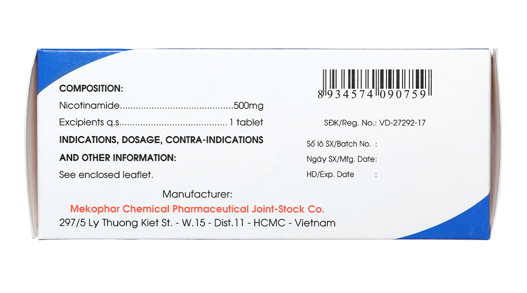 Sau khi uống, Nicotinamide được hấp thu nhanh qua đường tiêu hóa, chuyển hóa ở gan thành N-methylnicotinamide, các dẫn chất 2-pyridone, 4-pyridone và nicotinuric, bài tiết qua nước tiểu ở dạng không đổi.