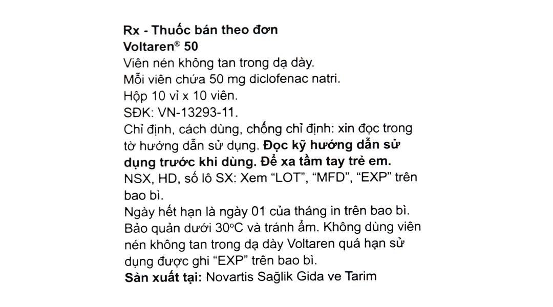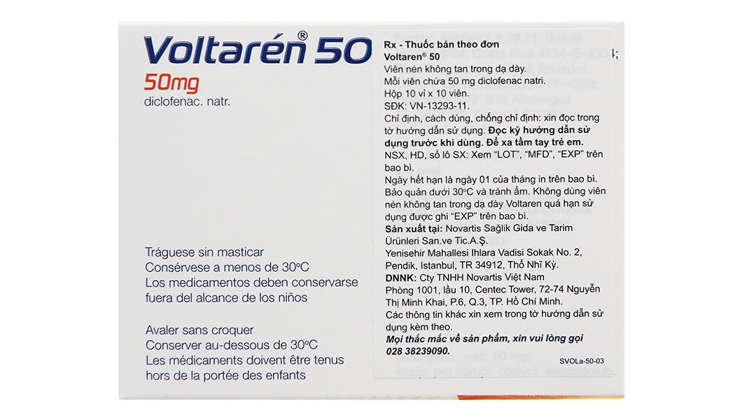 Voltaren 50mg giảm đau, kháng viêm xương khớp (10 vỉ x 10 viên)
