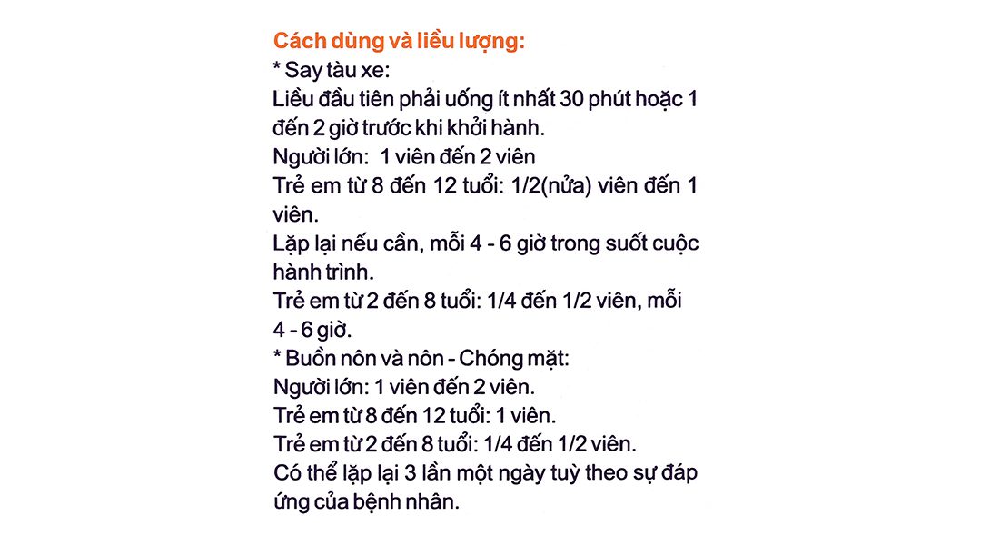 - Liều đầu tiên phải uống ít nhất nửa giờ hoặc 1 đến 2 giờ trước khi khởi hành.