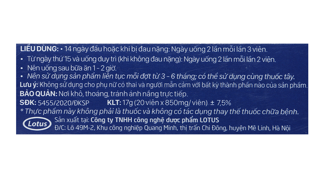 • Nên sử dụng sản phẩm liên tục mỗi đợt từ 3 – 6 tháng; có thể sử dụng cùng thuốc tây.