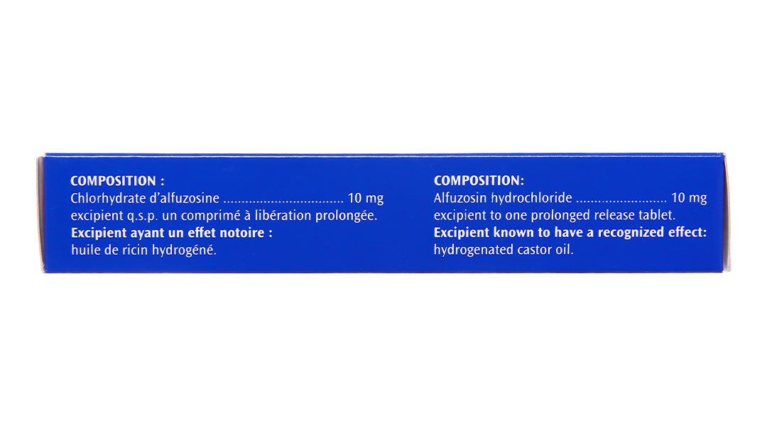 - Hoạt chất: Alfuzosin hydrochloride 10mg.