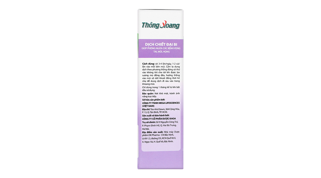 Sản phẩm kết hợp Đại Bi hỗ trợ phòng ngừa các bệnh vùng tai, mũi, họng và Glycerin làm ẩm, phục hồi lại độ ẩm tự nhiên của niêm mạc mũi.