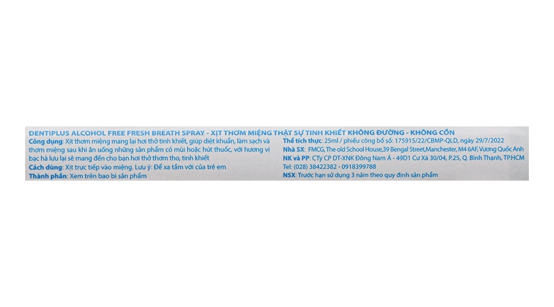 Xịt thơm miệng Dentiplus Alcohol Free giúp diệt khuẩn, mang lại hơi thở thơm mát chai 25ml