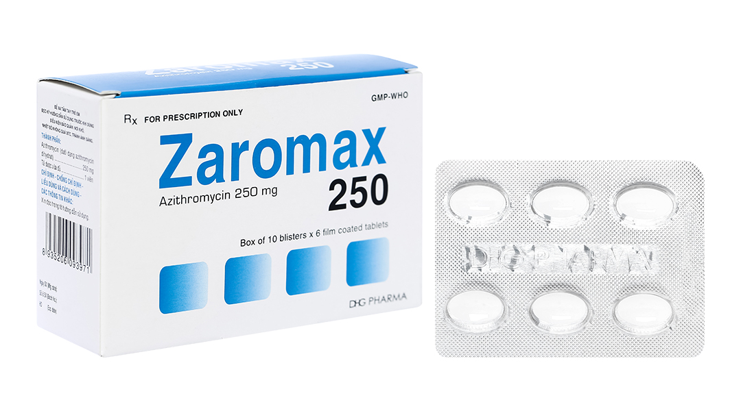 - Azithromycin sau khi uống, phân bố rộng rãi trong cơ thể, sinh khả dụng khoảng 40%. Thức ăn làm giảm khả năng hấp thu azithromycin khoảng 50%. Sau khi uống, nồng độ đỉnh huyết tương đạt được trong vòng từ 2 đến 3 giờ. Thuốc được phân bố chủ yếu trong các mô như phổi, amidan, tiền liệt tuyến, bạch cầu hạt và đại thực bào. Một lượng nhỏ azithromycin bị khử methyl trong gan và được thải trừ qua mật ở dạng không biến đổi và một phần ở dạng chuyển hóa. Khoảng 6% liều uống thải trừ qua nước tiểu trong vòng 72 giờ dưới dạng không biến đổi.