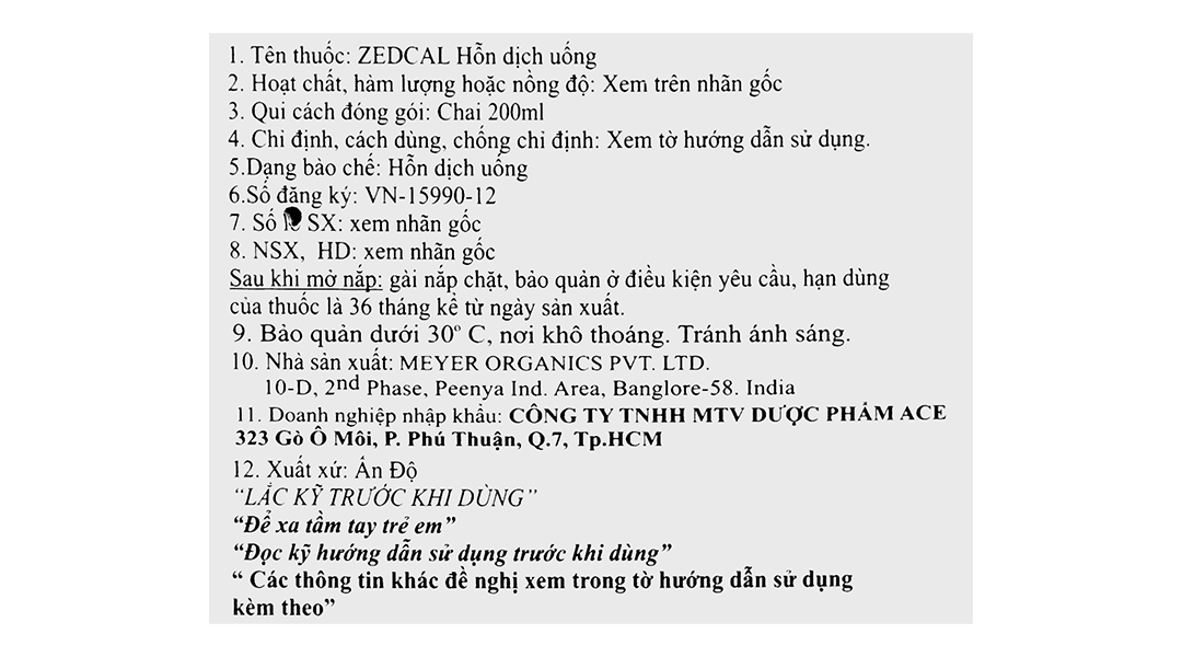 Hỗn dịch uống Zedcal bổ sung canxi, magie, kẽm và vitamin D3 chai 200ml