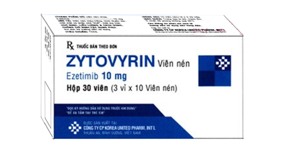 – Thận trọng khi sử dụngKhông nên sử dụng Zytovyrin ở các bệnh nhân có các vấn đề về di truyền hiếm gặp như không dung nạp galactose, thiếu hụt Lapp lactase hay chứng kém hấp thu glucose-galactose. Men gan Trong những thử nghiệm có kiểm soát ở những bệnh nhân dùng ezetimib với thuốc nhóm statin, đã thấy tăng liên tục transaminase [≥ 3 lần giới hạn trên của mức bình thường (ULN)]. Khi kết hợp ezetimib với statin, nên đánh giá chức năng gan khi bắt đầu điều trị và tuân theo những khuyến cáo của statin. Cơ xương khớp Trong những thử nghiệm lâm sàng, bệnh lý cơ và tiêu cơ vân liên quan đến ezetimib không nhiều hơn so với đối chứng (placebo hoặc một mình statin). Tuy nhiên, bệnh lý cơ và tiêu cơ vân là phản ứng không mong muốn của statin và các thuốc giảm lipid khác. Trong các thử nghiệm lâm sàng, tỷ lệ creatin kinase (CK) vượt quá 10 lần giới hạn trên của mức bình thường (ULN) là 0,2% khi dùng ezetimib so với 0,1% khi dùng placebo, và 0,1% khi dùng ezetimib kết hợp với statin so với 0,4% khi dùng một mình statin. Sau khi lưu hành ezetimib, đã có báo cáo bệnh lý cơ và tiêu cơ vân không rõ nguyên nhân. Đa phần bệnh nhân xuất hiện tiêu cơ vân đã dùng một statin trước khi bắt đầu dùng ezetimib. Tuy nhiên, rất hiếm báo cáo tiêu cơ vân khi đơn trị liệu ezetimib và rất hiếm báo cáo khi bổ sung ezetimib với các thuốc đã biết làm tăng nguy tiêu cơ vân. Tất cả bệnh nhân bắt đầu dùng ezetimib nên được thông báo về nguy cơ bệnh lý cơ và nên khuyên họ báo cáo ngay khi có bất kỳ bất thường nào như đau cơ, khó chịu hoặc yếu cơ. Nên ngừng ngay kết hợp ezetimib và statin khi bệnh nhân được chẩn đoán hoặc nghi ngờ bệnh lý cơ. Chẩn đoán bệnh lý cơ khi có các triệu chứng như trên và nồng độ creatin kinase (CK) > 10 lần ULN. Fibrat Chưa nghiên cứu sử dụng kết hợp ezetimib với các fibrat khác ngoài fenofibrat. Do đó không nên dùng kết hợp Zytovyrin với các fibrat (ngoại trừ fenofibrat). Fenofibrat Nếu nghi ngờ bệnh sỏi mật ở bệnh nhân dùng Zytovyrin và fenofibrat thì nên kiểm tra túi mật và cân nhắc điều trị thuốc hạ lipid thích hợp khác. Cyclosporin Nên thận trọng khi bắt đầu dùng ezetimib cho bệnh nhân đang dùng cyclosporin. Nên theo dõi nồng độ cyclosporin ở những bệnh nhân dùng Zytovyrin cùng cyclosporin. Thuốc chống đông máu Nên theo dõi tỷ lệ bình thường hóa quốc tế (INR) một cách hợp lý nếu bổ sung Zytovyrin vào quá trình điều trị warfarin, coumarin chống đông máu khác, hoặc fluindion. – Phụ nữ có thai và cho con búPhụ nữ có thai: Chưa có các bằng chứng lâm sàng cho thấy sự ảnh hưởng trên phụ nữ có thai. Phụ nữ cho con bú: Nghiên cứu trên chuột cho thấy ezetimib được tiết vào sữa, tuy nhiên vẫn chưa biết liệu ezetimib có bài tiết vào sữa ở người hay không. Vì vậy, phụ nữ cho con bú không nên dùng Zytovyrin trừ khi lợi ích đạt được hơn hẳn nguy cơ đối với trẻ sơ sinh. – Khả năng lái xe và vận hành máy mócChưa tiến hành nghiên cứu về ảnh hưởng của thuốc lên khả năng lái xe và vận hành máy móc. Tuy nhiên, các tác dụng không mong muốn của thuốc có thể ảnh hưởng lên khả năng lái xe và vận hành máy móc. – Tương tác thuốcThuốc kháng acid: Làm giảm hấp thu ezetimib nhưng không ảnh hưởng đến sinh khả dụng của thuốc. Sự giảm hấp thu này không có ý nghĩa về mặt lâm sàng. Cholestyramin: Dùng đồng thời ezetimib với cholestyramin làm giảm AUC trung bình của ezetimib toàn phần (ezetimib và ezetimib-glucuronid) khoảng 55%. Mức độ giảm thêm LDL-C nhờ bổ sung ezetimib vào liệu pháp cholestyramin có thể kém hơn do tương tác thuốc này. Cyclosporin: Có khả năng gây tương tác dược động học (tăng nồng độ đỉnh ezetimib huyết tương và AUC, tăng AUC cyclosporin). Mức độ tương tác thuốc với ezetimib tăng lên ở những bệnh nhân suy thận nặng, do đó cần sử dụng thận trọng khi kết hợp và theo dõi nồng độ cyclosporin. Các fibrat: Sử dụng kết hợp với fenofibrat hoặc gemfibrozil làm tăng tổng nồng độ ezetimib khoảng 1,5 – 1,7 lần nhưng không có ý nghĩa lâm sàng. Tính an toàn và hiệu quả của ezetimib kết hợp với các fibrat ngoại trừ fenofibrat chưa được thiết lập. Các statin: Không có tương tác dược động học có ý nghĩa lâm sàng khi kết hợp ezetimib với atorvastatin, simvastatin, pravastatin, lovastatin, fluvastatin hay rosuvastatin. Thuốc chống đông: Trong một nghiên cứu trên 12 nam giới khỏe mạnh, dùng ezetimib 10 mg mỗi ngày không ảnh hưởng đến sinh khả dụng của warfarin và thời gian prothrombin. Có những báo cáo về tăng INR ở những bệnh nhân sử dụng uống ezetimib khi đang sử dụng warfarin hoặc fluindion. |